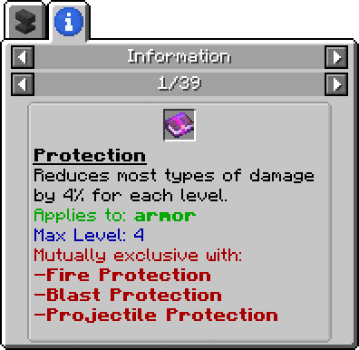 This mod adds JEI info entries for enchantments. Press R while hovering over a book with a single enchantment to view info about it.