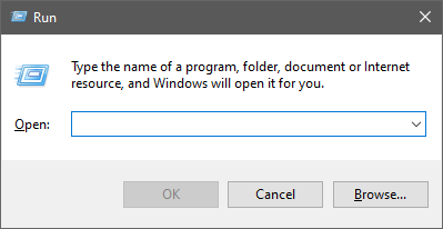 2. Hold the WINDOWS key and press R, a window named "Run" should appear.